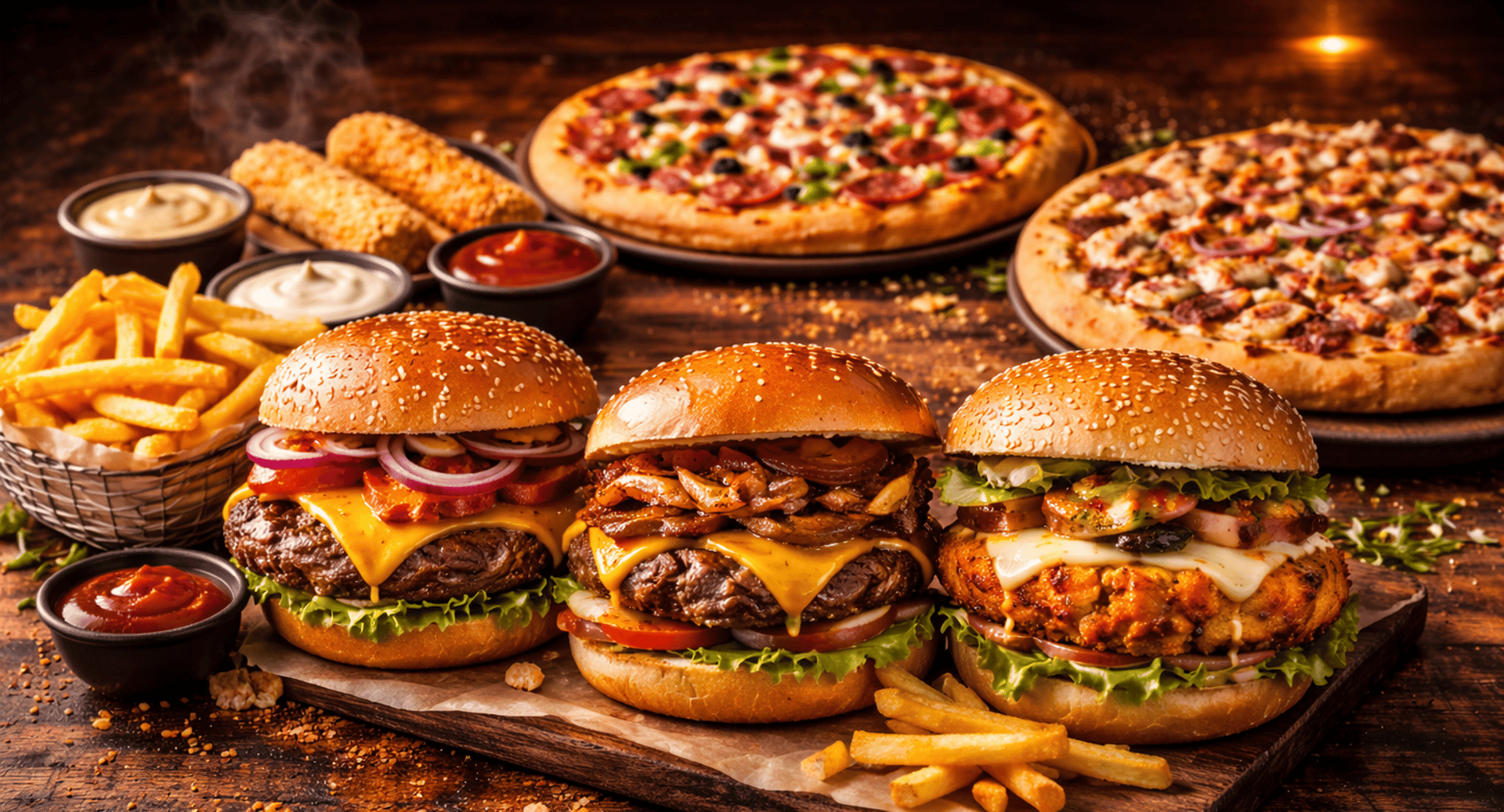 A close-up shot of a juicy burger with melted cheese and fresh lettuce on a sesame seed bun, steam rising invitingly.